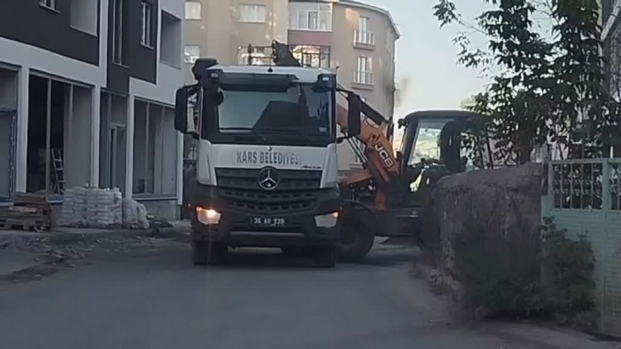 Kars Belediyesine ait çöp kamyonunun kasasında, Şehitler Mahallesi'nde yangın çıktı.