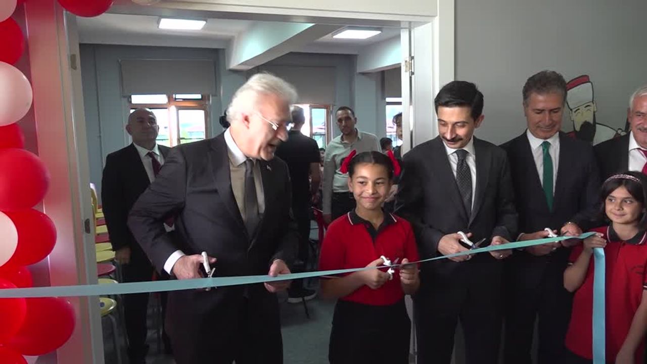 Sahnenin açılışı dolayısıyla düzenlenen törene katılan Tamer Karadağlı, kendisine mektup gönderen öğrenci Sidra Topçuoğlu ile görüştü, okuldaki sınıfları gezerek öğrencilerle bir araya geldi.