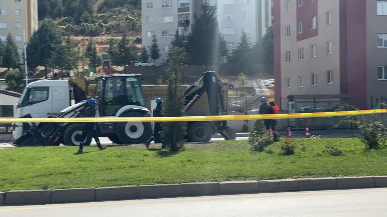 Mehmet Akif Ersoy Mahallesi Rauf Denktaş Caddesi'nde iş makinesiyle yapılan elektrik altyapı çalışması sırasında, bölgeden geçen doğal gaz borusu delindi.