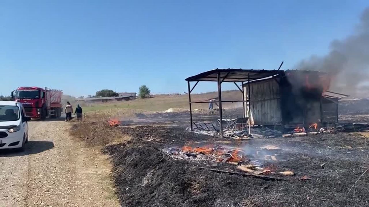 Akçaalan Mahallesi'ndeki boş arazide Kürşat Tufan'a ait güvercinlerin bulunduğu kulübede, henüz bilinmeyen nedenle yangın çıktı.