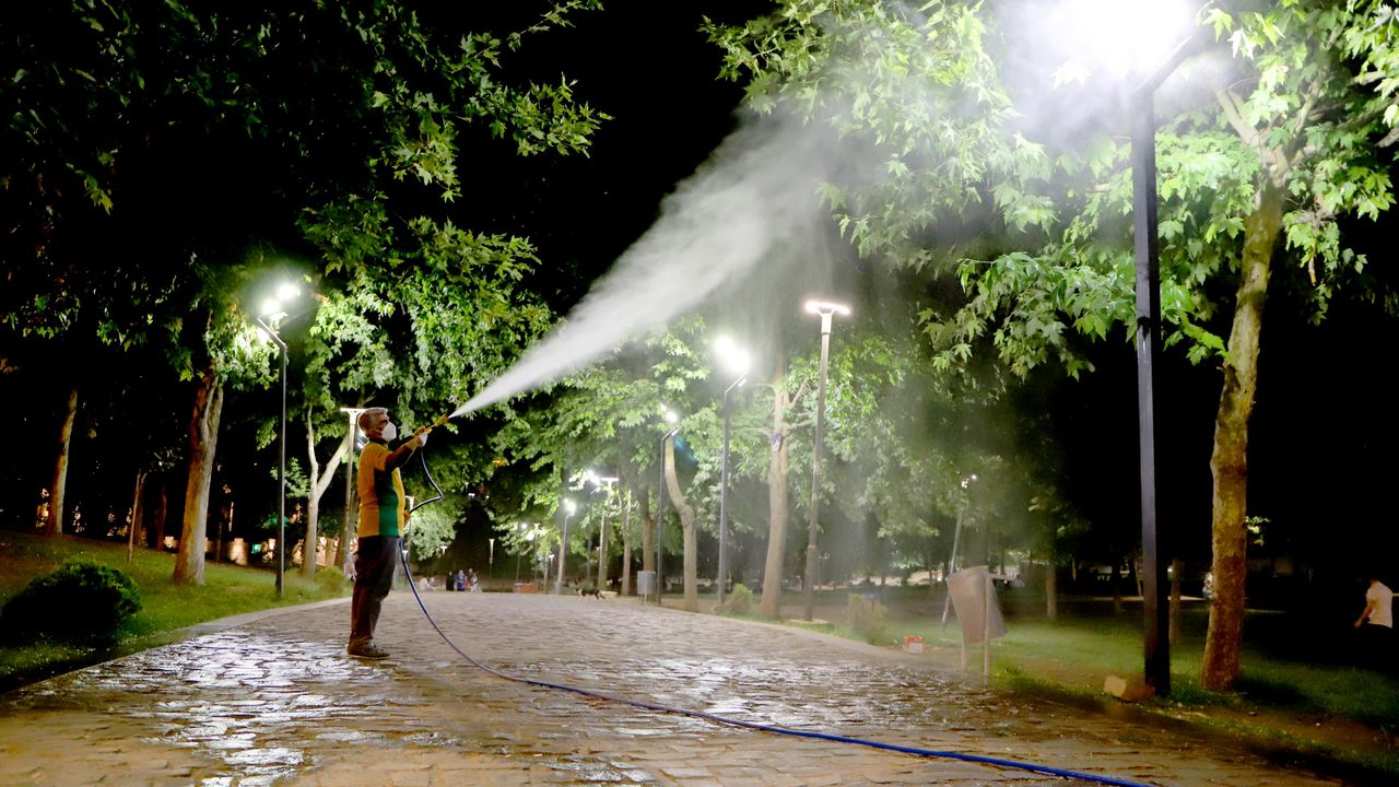 Yurttaşların yaşam konforu düşünülerek gece geç saatlerde yürütülen çalışmalarda ekipler, ayrıca kök ve yaprak geliştirici ilaçlarla da bitkilerin daha sağlıklı büyümesini sağlıyor.