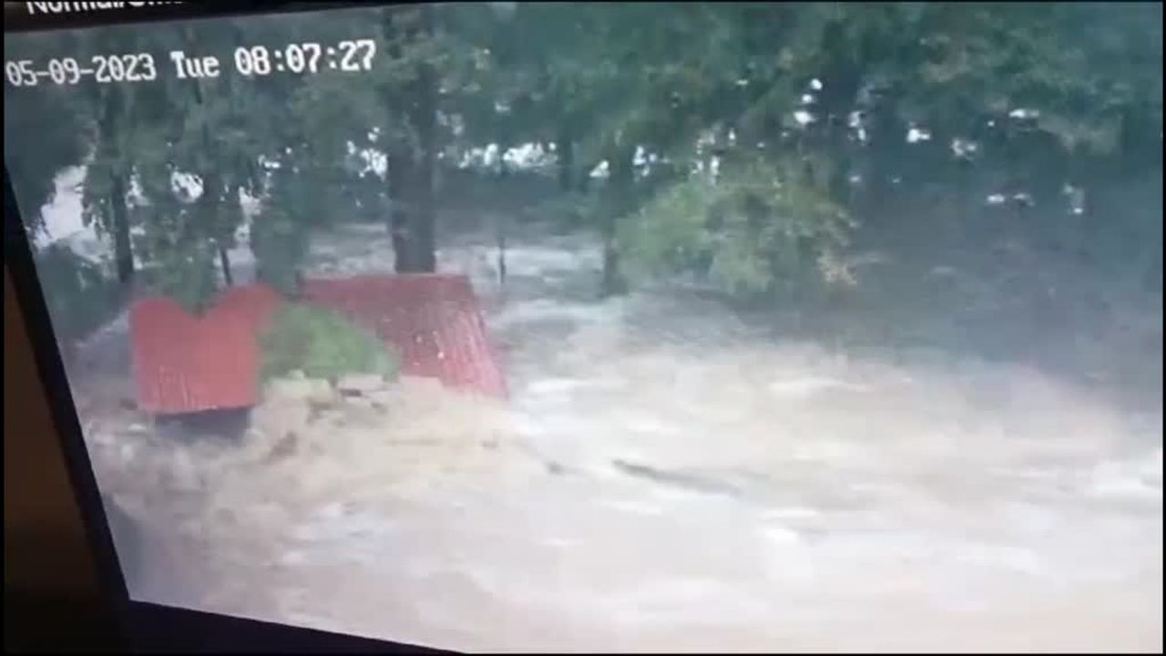 Görüntülere sel sularının kameranın görüş açısındaki yaklaşık 2 metrelik bir depovari yapının neredeyse tamamını kapladığı da yansıyor.