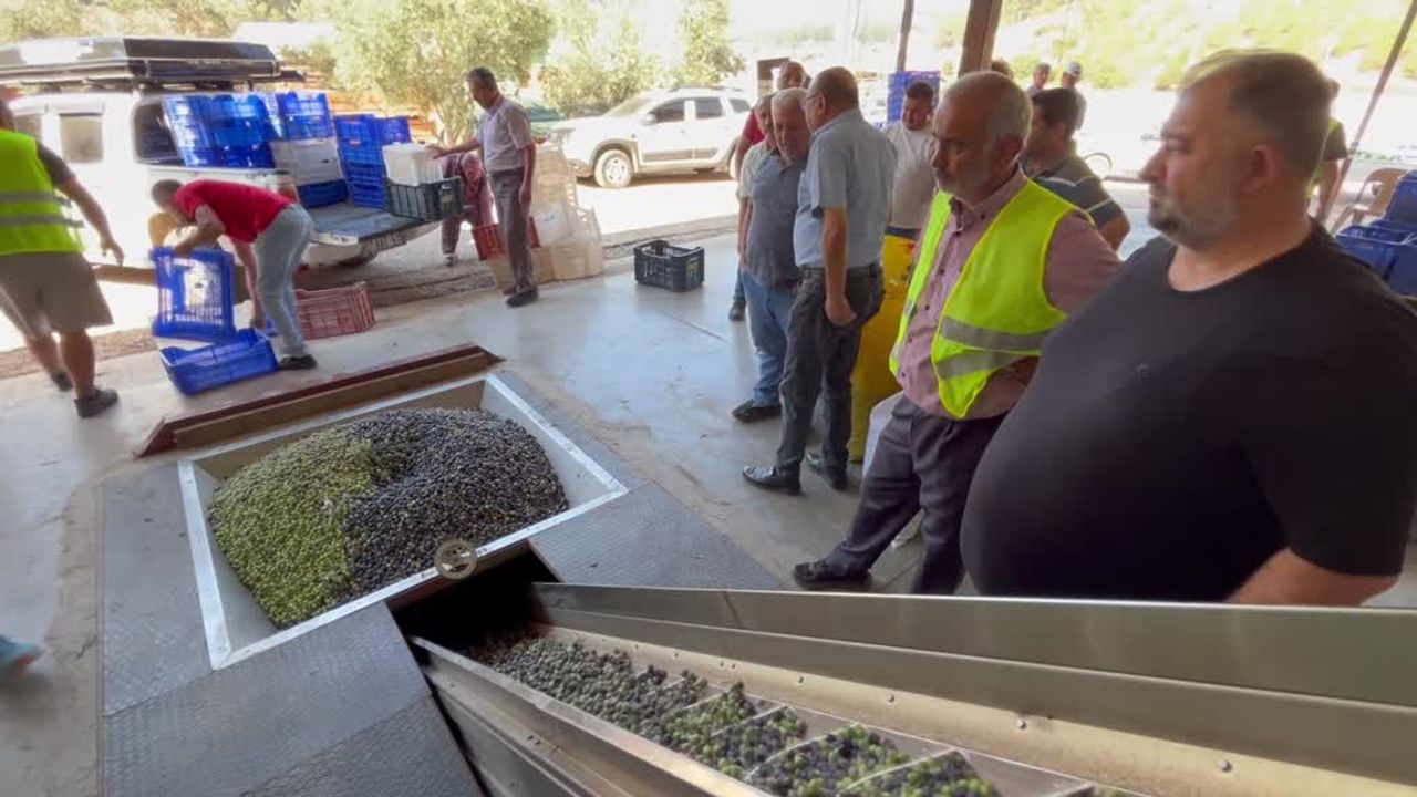 Konuşmanın ardından çiftçiler getirdikleri zeytinleri, yağa dönüştürmek için fabrikaya boşalttı.
