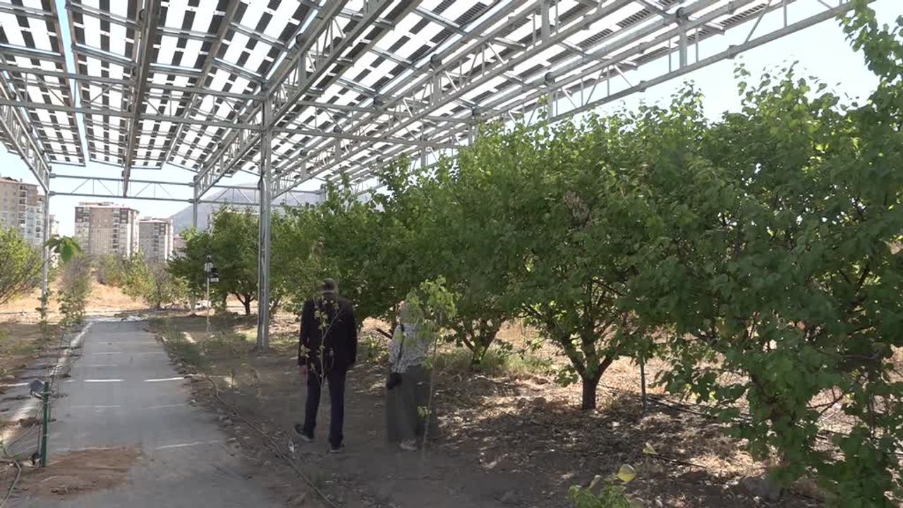 Proje yöneticisi Doç. Dr. Özhan Şimşek,arazideki kayısı ağaçlarının bir bölümünün üzerine güneş enerjisi panelleri yerleştirildiğini söyledi.