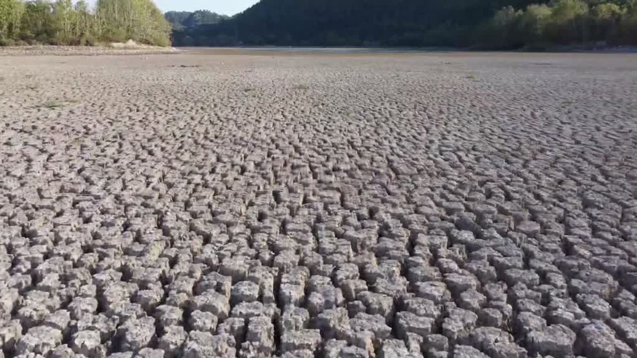 Büyük oranda suların çekildiği alandaki derin çatlaklar kuraklığın boyutunu gözler önüne seriyor.