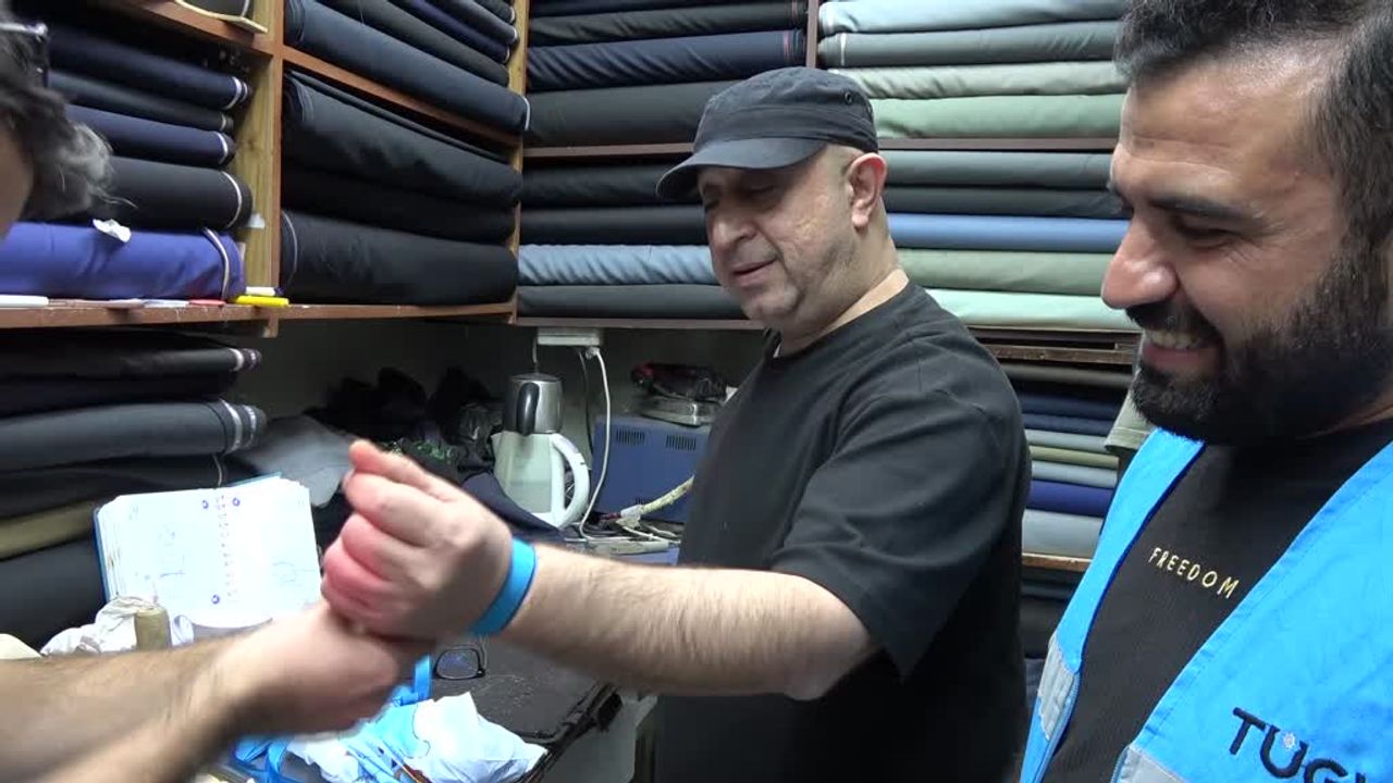 Vatandaşlara filo hakkında bilgi veren vakıf yöneticileri, bileklerine mavi kurdele takarak Küresel Sumud Filosu'na destek oldu.