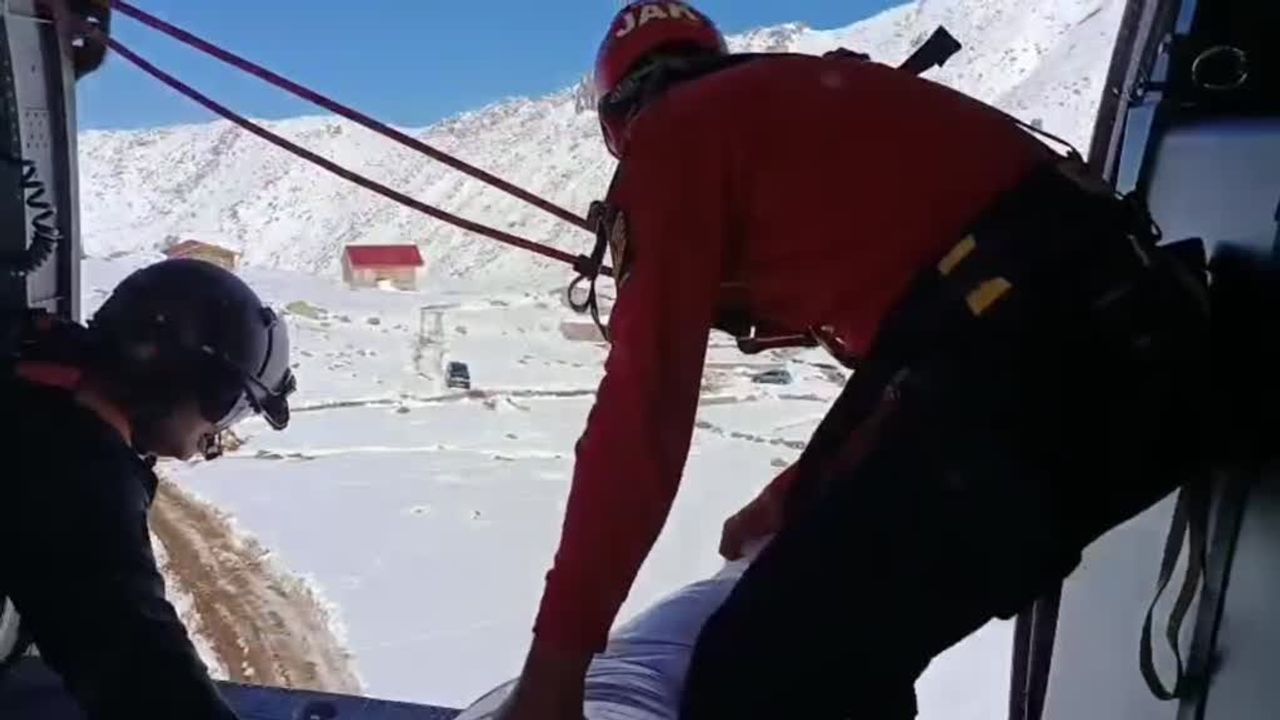 Jandarma Havacılık Komutanlığına ait Sikorsky S-70 tipi helikopterle bölgede mahsur kalan vatandaşlar için erzak ve hayvanlar için yem ulaştırıldı.