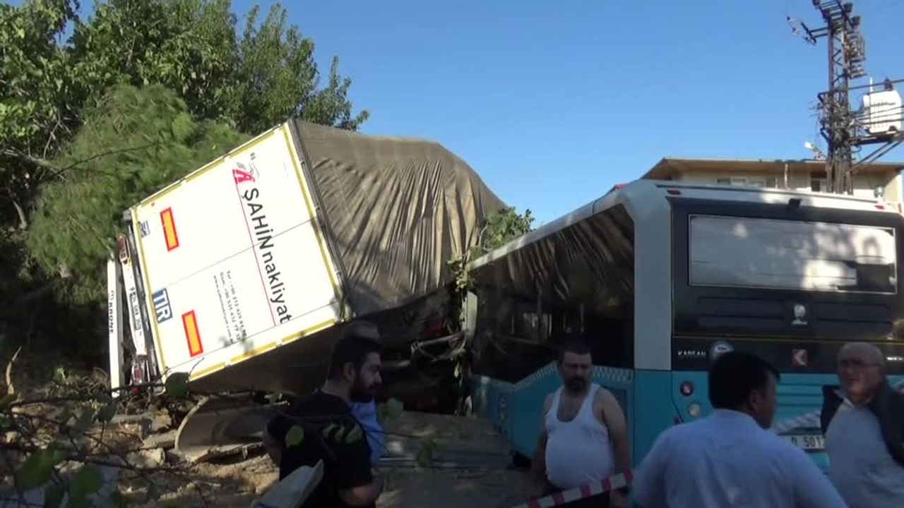 Tırın çarptığı park halindeki 2 şehir içi halk otobüsü ile otomobil de zarar gördü.